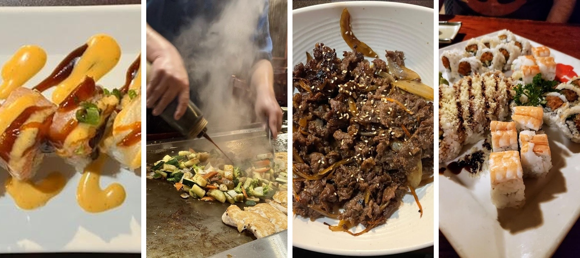 Tempura shrimp and spicy crab. Topped with hibachi shrimp and hibachi scallops. Eel sauce and yum yum sauce ...